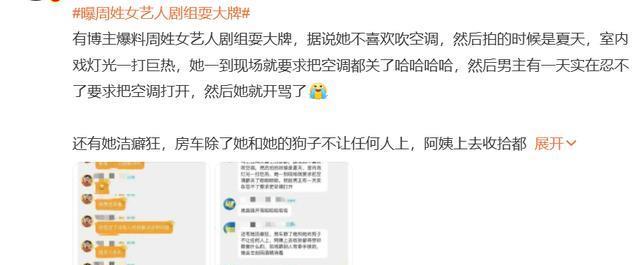 周姓女艺人剧组耍大牌风波:真相待明